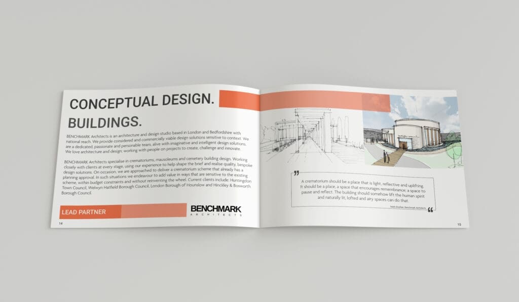 When Cemetery Development Services started a crematorium design and development partnership with Benchmark Architects and MAC Construction Consultants, we were enlisted to provide design and print production support for the project.