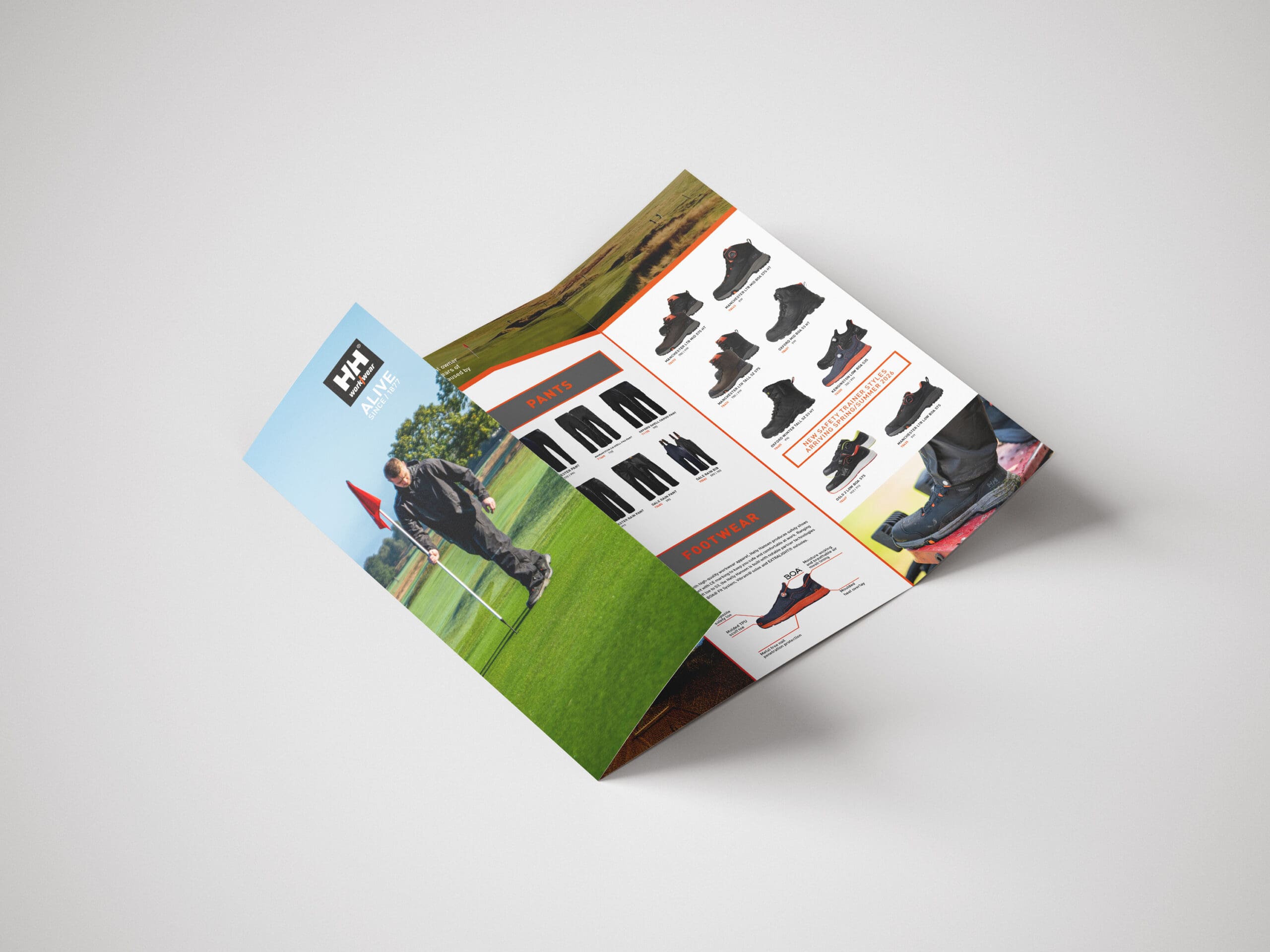 We developed a comprehensive suite of gatefold marketing leaflets tailored to each product category: Trades, Footwear, and Hi-Viz. By using modular storytelling, each leaflet delivered focused information while maintaining a cohesive brand look and feel across the range.