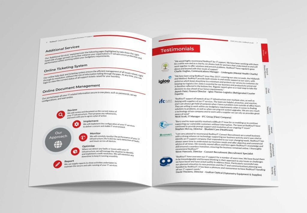 RedKey IT are a growing IT support company based in Bedfordshire, UK. We were asked to redesign their website and at the same time refresh they printed collateral to tie in with the new website branding.